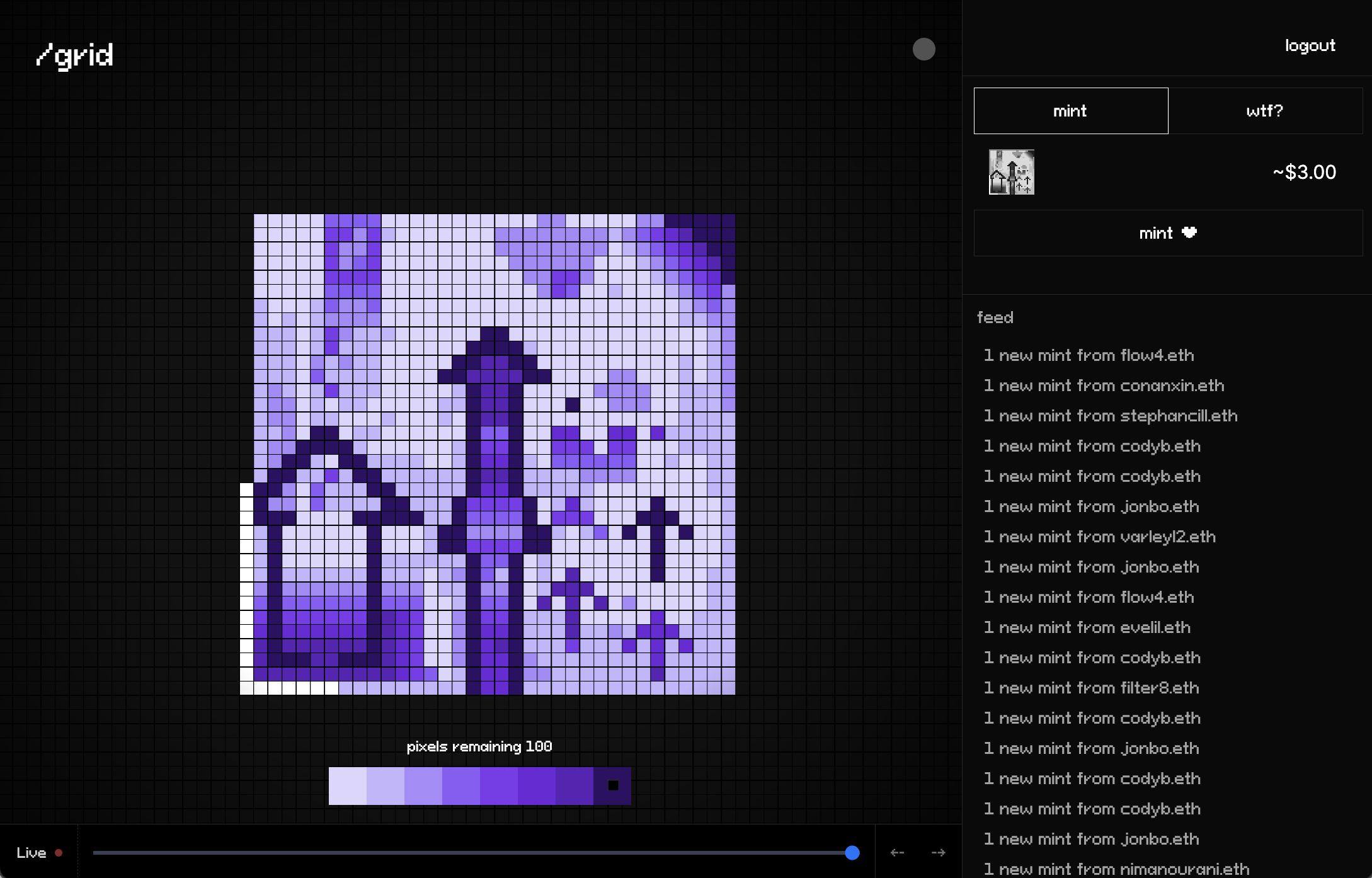 - tile-based collaborative pixel art NFT game
